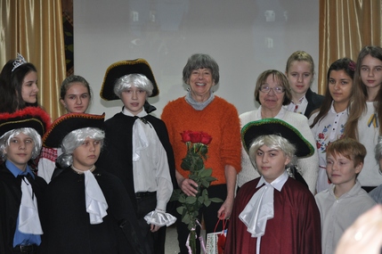 У затишному колі учнів і педагогічного колективу відбулася зустріч із Тессою Вест, яку приємно вразила щирість наших учнів та їх небайдужість до долі простої людини, багатої духовно. Вона поділилася враженнями від своїх досліджень про Джона Говарда, як про людину, яка жила для інших, не шкодуючи себе. Видатна британська письменниця була приємно вражена гостинністю та пообіцяла обов’язково ще повернутися до нашого навчального закладу .