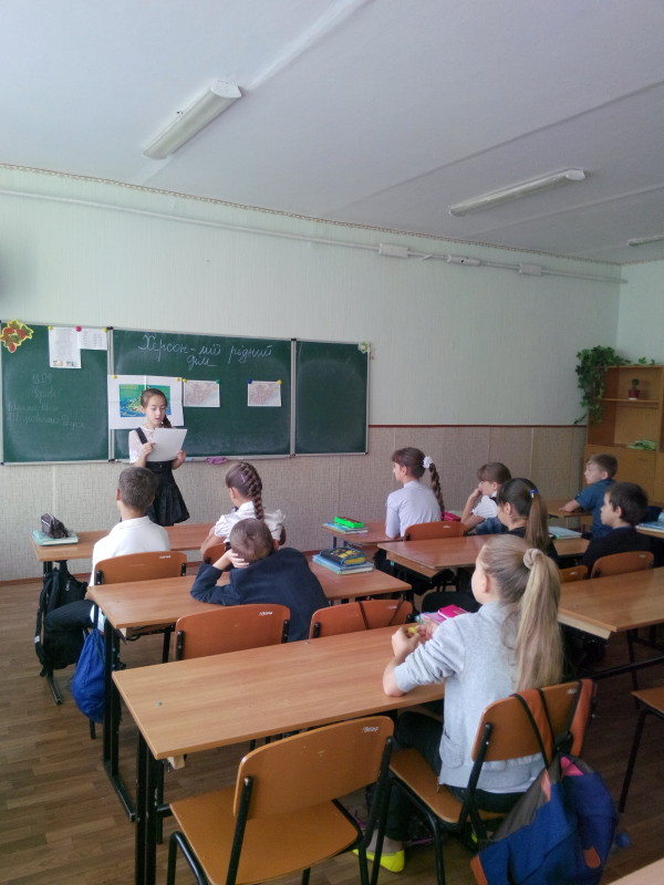18 вересня 2015 року у 5-Б класі відбулася година спілкування з нагоди Дня міста “Херсон – мій рідний дім!” , під час якої діти ділилися своїми знаннями про факти з історії створення рідного міста та з цікавістю дізнавалися нові, знаходили свою вулицю на карті Херсона та розповідали про визначних мешканців свого міста.