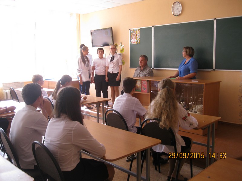 Володимир Олександрович розповів учням про бійців-добровольців, які разом з ним захищають рідну землю України, про їх незламність та бажання бути до кінця вірним присязі, захищати Батьківщину. Зустріч закінчилась с побажаннями добра і миру народу України.