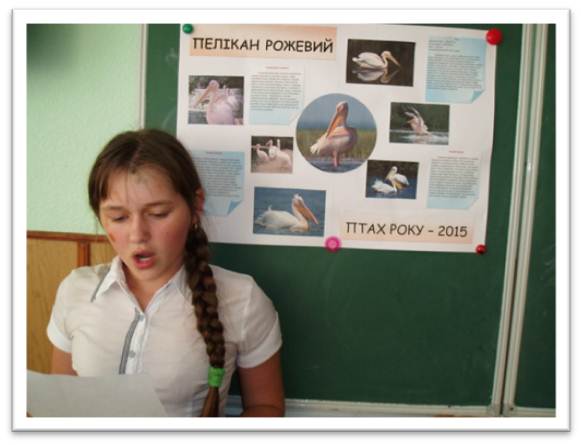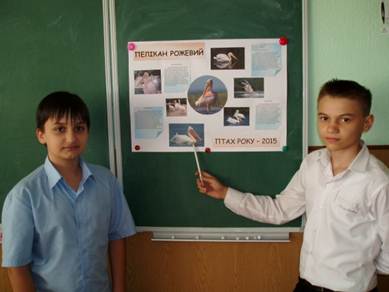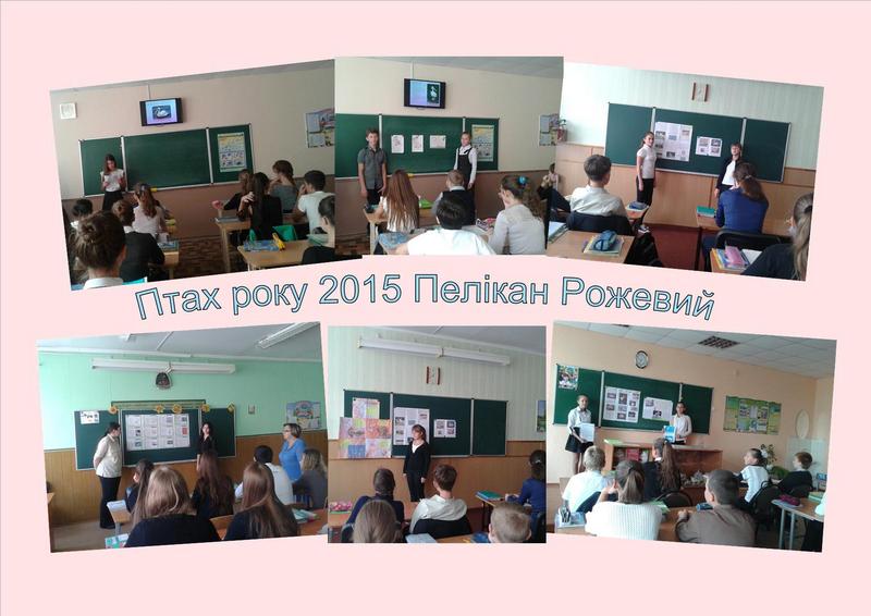 Учні школи долучилися до акції “Птах року 2015 – рожевий пелікан”. В кожному класі пройшли різноманітні заходи, присвячені цій темі: бесіди, вікторини, виставки, захисти проектів та інше.