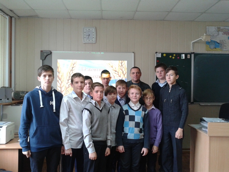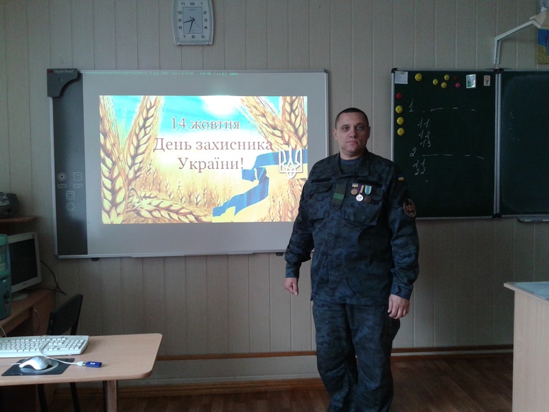 12 жовтня у 8-х класах проведений урок-реквієм “Герої поряд з нами”. На зустрічі був присутній герой, учасник АТО. Учні спілкувалися з Сергієм, побажали йому здоров’я та успіхів.