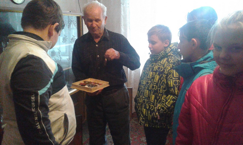 Напередодні святкування Дня захисника України учні  6-А класу завітали до ветерана  Великої Вітчизняної війни Скрипки Павла Терентійовича. У своїй щирій розповіді він поділився спогадами про дитинство, юнацькі роки, розповів про страшні жахіття війни, закликав дітей  добре вчитися, бути гідними громадянами держави Україна. Школярі з захопленням слухали ветерана, їх цікавили деталі, вони з запалом ставили все нові і нові запитання. Шестикласники  подякували  Павлу  Терентійовичу  за цікаву розповідь, побажали здоров’я, довгих  років життя.