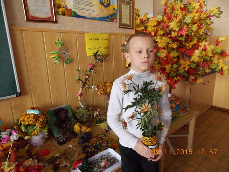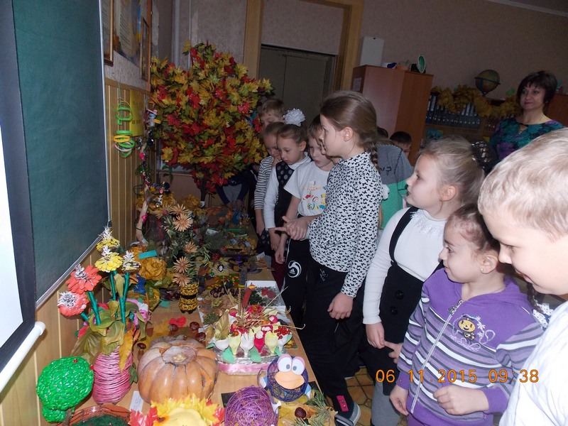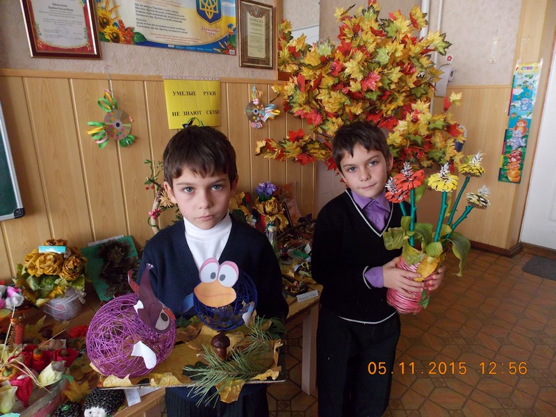 Перші канікули для учнів 1-А класу стали не тільки часом відпочинку, але й корисного дозвілля. Діти з батьками готувалися до творчої виставки «Умілі руки не знають нудьги». В перший день навчання учні принесли до класу вироби з різних матеріалів: з насіння, пір’я, листя, жолудів, каштанів, огірків, кольорової капусти, гарбузів, тощо. Діти з гордістю показували свої вироби й зацікавлено роздивлялися експонати друзів. На виставку завітали батьки дітей, вчителі та учні інших класів. Захопленню відвідувачів не було меж. А учасники виставки отримали солодкі нагороди.