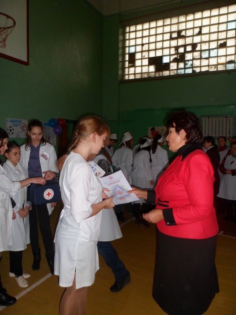 Команда школи, яка складалася із дівчат 10-11 класів, продемонструвала вміння надавати першу допомогу, підготувала цікаву презентацію із історії товариства Червоного хреста України та посіла ІІІ місце.