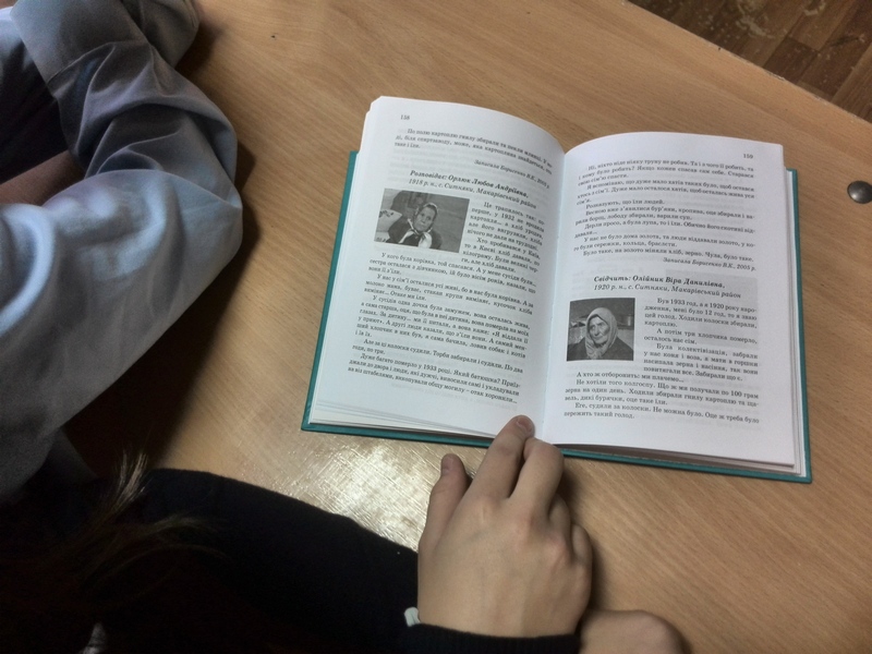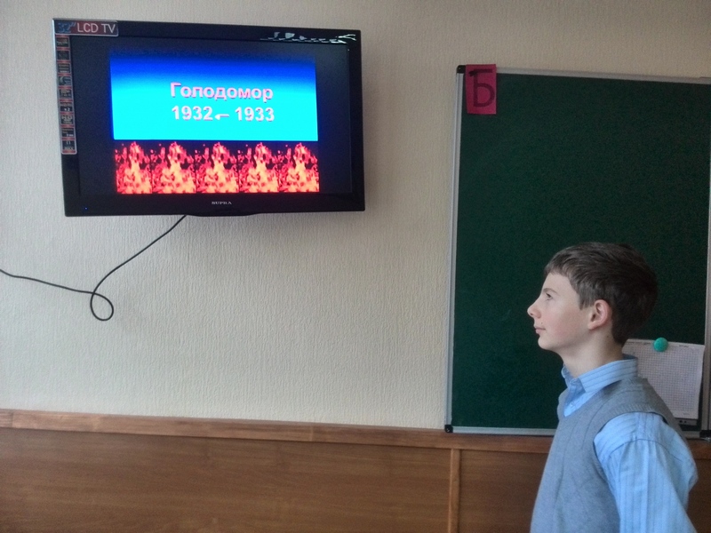 25 листопада в 6-Б класі була проведена година спілкування «Голодомор в Україні». Учні виступили з повідомленнями про сумні сторінки історії 1932-1933р.років, переглянули відеофрагменти. Шестикласники зачитали свідчення очевидців, людей, які пережили голод з книги «Свіча пам’яті» Валентини Борисенко. Ця книга була передана учнями до шкільного бібліотечного фонду.