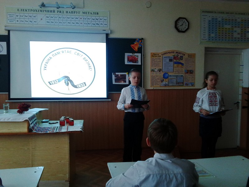 Учасники виховного заходу – на високому патріотичному рівні донесли до присутніх усі страхіття пережитого нашим народом у часи Голодомору 1932-1933 рр. та  переглянули частину фільму: «Великий голод»