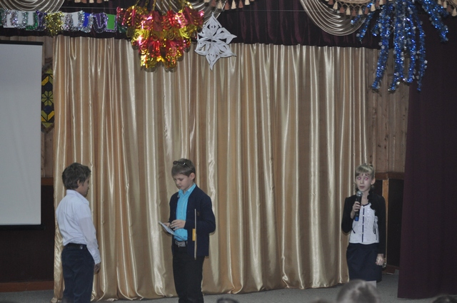 Учні 6-Б класу прочитали байку “Як зайчисько закохався”, а учні 6-А класу запросили на танець “Ой, мамо, люблю Гриця”, балерина Колоколова Єлизавєта, учениця 6-В класу, виконала танець “Спогади”. Учениця 6-Г класу Сафонова Катерина написала вірш, який присвятила бійцям АТО.