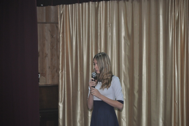 9-В клас представив вірш “Мне нравится..”, у виконанні Луцай Дар’ї та запальний та веселий танець у виконанні Олександри та Ксенії Чепеляк