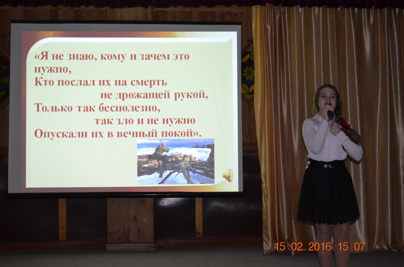 Хвилиною мовчання вшанували пам’ять воїнів, що загинули в Афганістані. На завершення учні побажали миру та добра всім присутнім, здоров’я – воїнам бойових дій, а також запропонували продовжити традицію дружніх зустрічей з «афганцями».