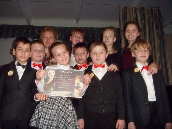 Вітаємо команду  нашої школи «Пізнайки», яка здобула перше місце та вийшла у фінал міського інтелектуального конкуру «Ерудит» молодша ліга. Наші ерудити здобули перемогу у грі, в якій приймали участь ще сім команд таких навчальних закладів, як гімназія№20, гімназія №1, ліцей мистецтв, ЗОШ №11 та інш. Імена наших переможців: