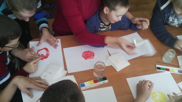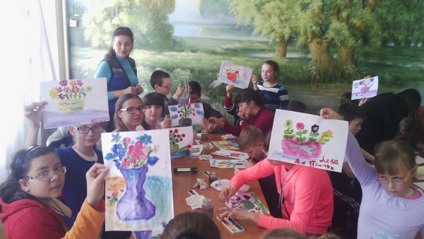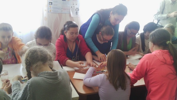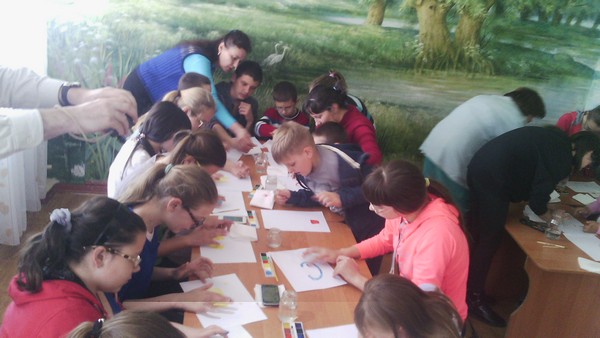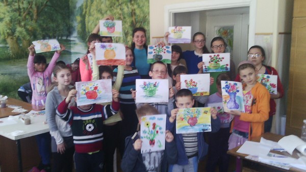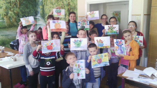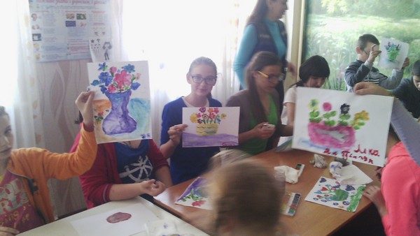 В межах благодійної акції «Подаруємо барви життя» в херсонській дитячій обласній клінічній лікарні було проведено майстер-клас «Квіти для мами» пальчиковий живопис  для дітей лікарні вчителем образотворчого мистецтва Бабій У.В та учнями шкільного гуртка «Фантазери» (Сергєєва Т. – 8-Б клас, Витвицька К. – 6-В клас, Сердюкова К.  – 6-Б клас, Розенфельд Х. – 4-А клас).