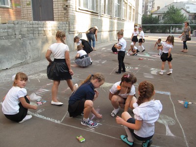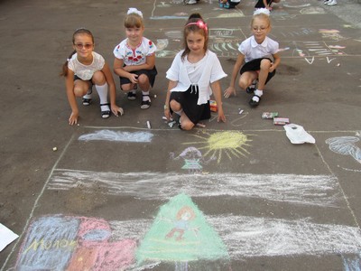 Для учнів початкових класів був проведений конкурс малюнків на асфальті.