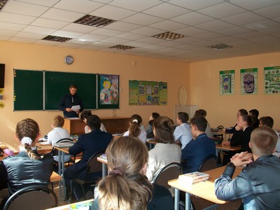 У школі №46 5 жовтня відбулася зустріч із завідувачем сектором цивільного захисту Корабельної районної ради – Кравченком Юрієм Павловичем та завідуючим обласного методичного кабінету НМЦ ЦЗ БЖД Херсонської області – Новгородським Олегом Володимировичем. Учні 9-В класу провели дуже цікаво час, адже розмова і перегляд фільму про правила поведінки під час військових дій, артобстрілів, знаходження боєприпасів були дуже цікавими та пізнавальними.