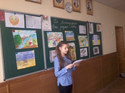 Школярі молодших класів взяли участь у конкурсі малюнків та конкурсі знавців прислів’їв, приказок про рідну мову. А ось учні 7-х класів декламували вірші про рідну мову. Найкращими були учні 7-Б та 7-В класів.