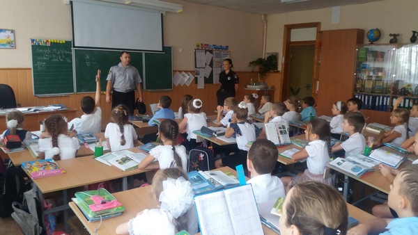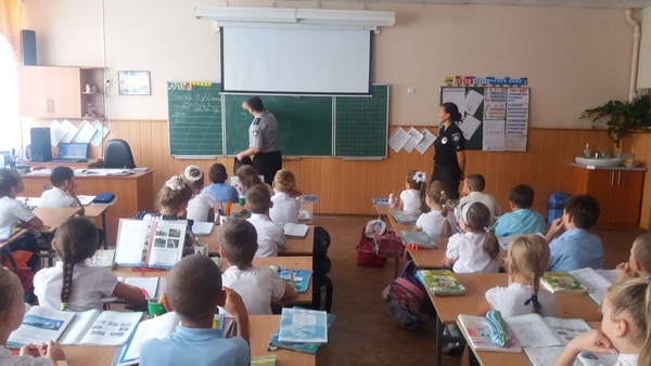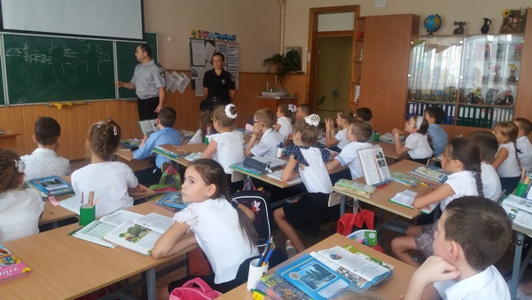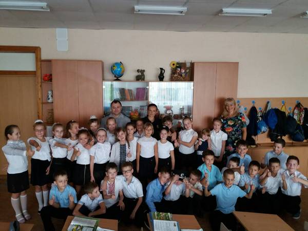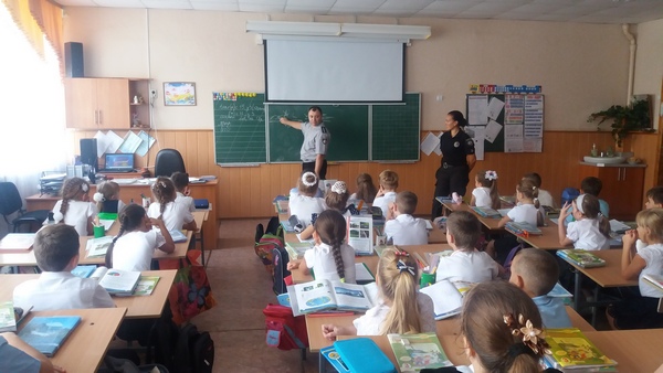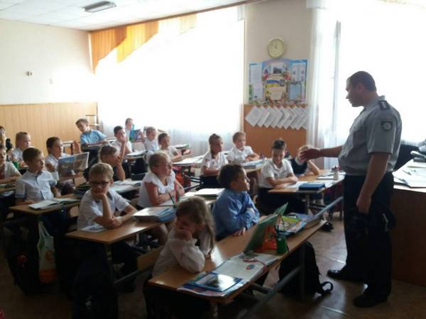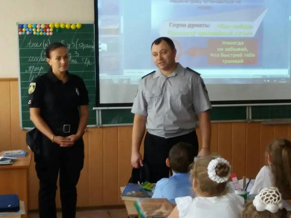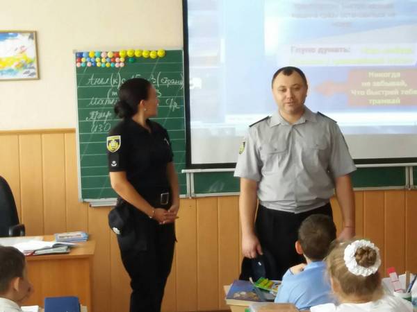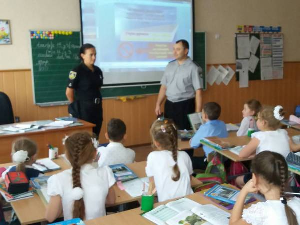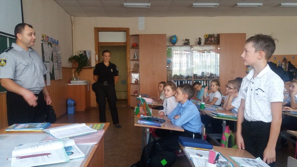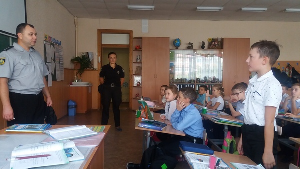 На цьому уроці були присутні співробітники національної поліції України в Херсонській області: Мартинова Юлія Петрівна та Сикальчук Анатолій Миколайович. З учнями вони провели бесіду та перевірили їх знання з правил безпеки дорожнього руху та дорожніх знаків. Також торкнулися тем: толерантне відношення у колективі, шкідливі звички, вибухонебезпечні предмети.