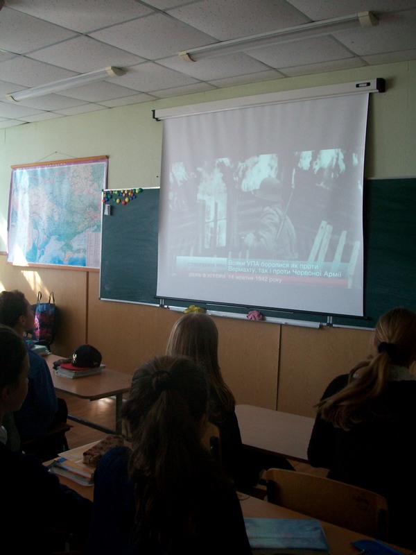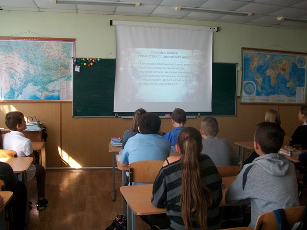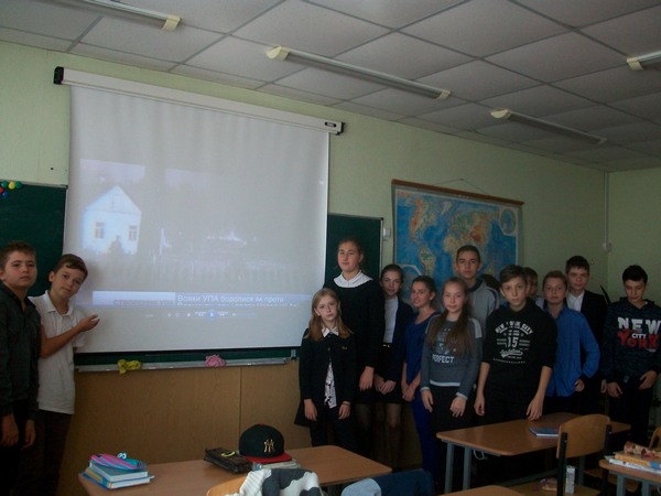 14 жовтня – День українського козацтва та церковне свято Покрови Пресвятої Богородиці покровительки козаків. А ми, учні 7-В класу, ще й згадували про визначну дату в історії нашої держави цього дня. Нескорені українці відстоювали свободу своєї нації, своєї країни та цього дня створили Українську Повстанську Армію. 75 років тому сталась ця подія. Історія змінюється, але прагнення свободи людьми є вічним. Тож ми продивились відео про створення УПА, послухали про їхню діяльність. Нащадки повинні знати свою історію, а ми прагнемо знати якомога більше про нашу країну та події, що відбувались на її теренах.