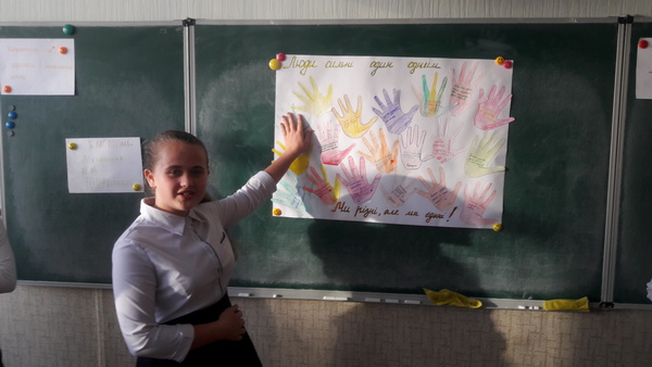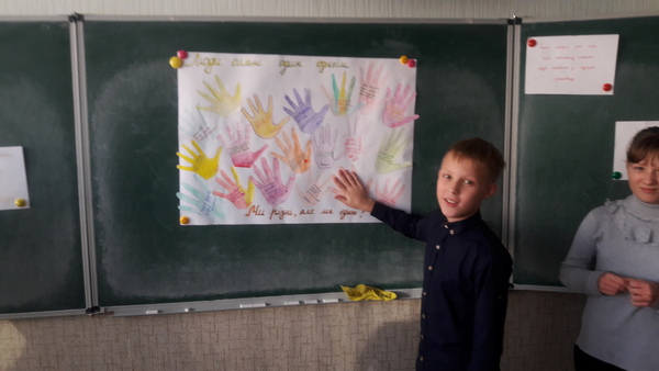 З нагоди Міжнародного дня толерантності у 7-Б класі (класний керівник Дергачова А. І.) відбувся виховний захід. Діти створили проект «Люди сильні один одним», написавши побажання іншим на малюнку власної долоньки, взяли участь у тренінгу «Я найкраще можу…», завдяки якому учні поділилися з однолітками своїми найкращими корисними досягненнями, самоствердилися та підтримали однокласників, а наостанок семикласники переглянули відеофільм «Ми різні, але єдині», героями якого були вони самі.
