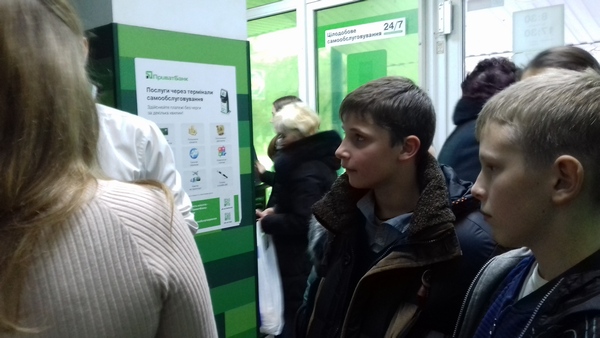 29.11.2017 ролку учні 6-Б класу були на екскурсії у ПриватБанку. Екскурсія дітям дуже сподобалась. Учні дізнались про роботу банку, напрямки роботи з клієнтами, про те, які спеціальності існують в банківській сфері. Після цікавої вікторини про гроші, діти отримали призи. Школярі отримали задоволення від екскурсії.