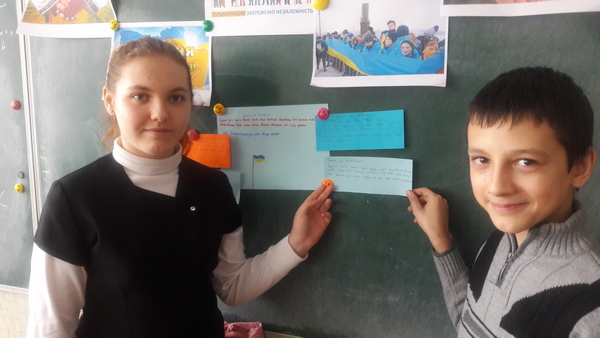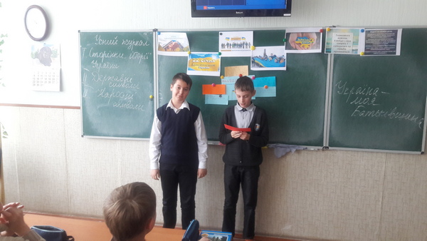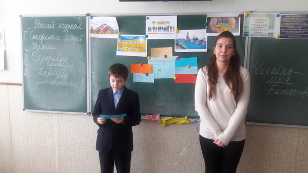 У 7-Б класі з метою поглиблення знань про історичний факт злуки українського народу, виховання національної свідомості учнів відбулася година спілкування до Дня Соборності України.