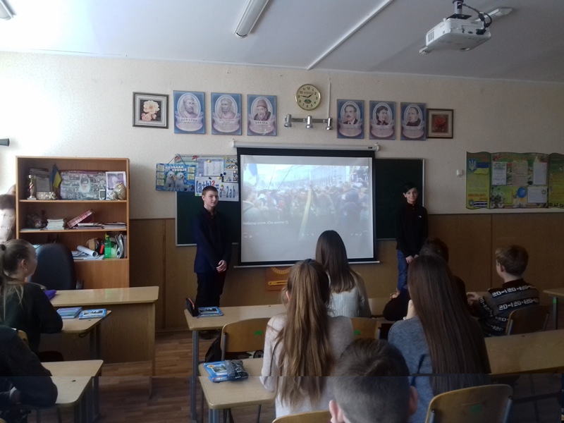 22 січня учні 9-В класу підготували виховну годину до Дня Соборності України за темою: «Юні ангели небесної сотні»
