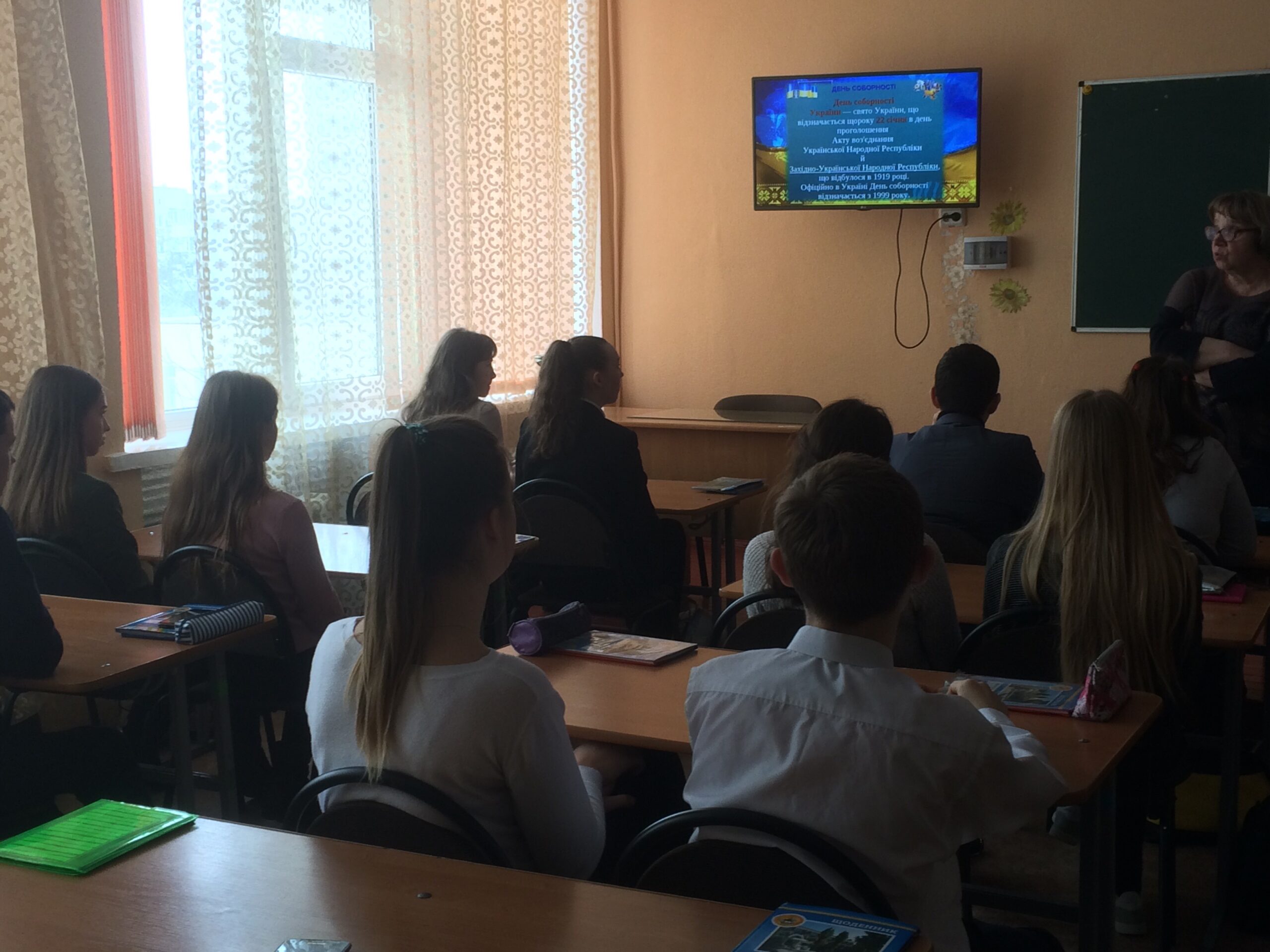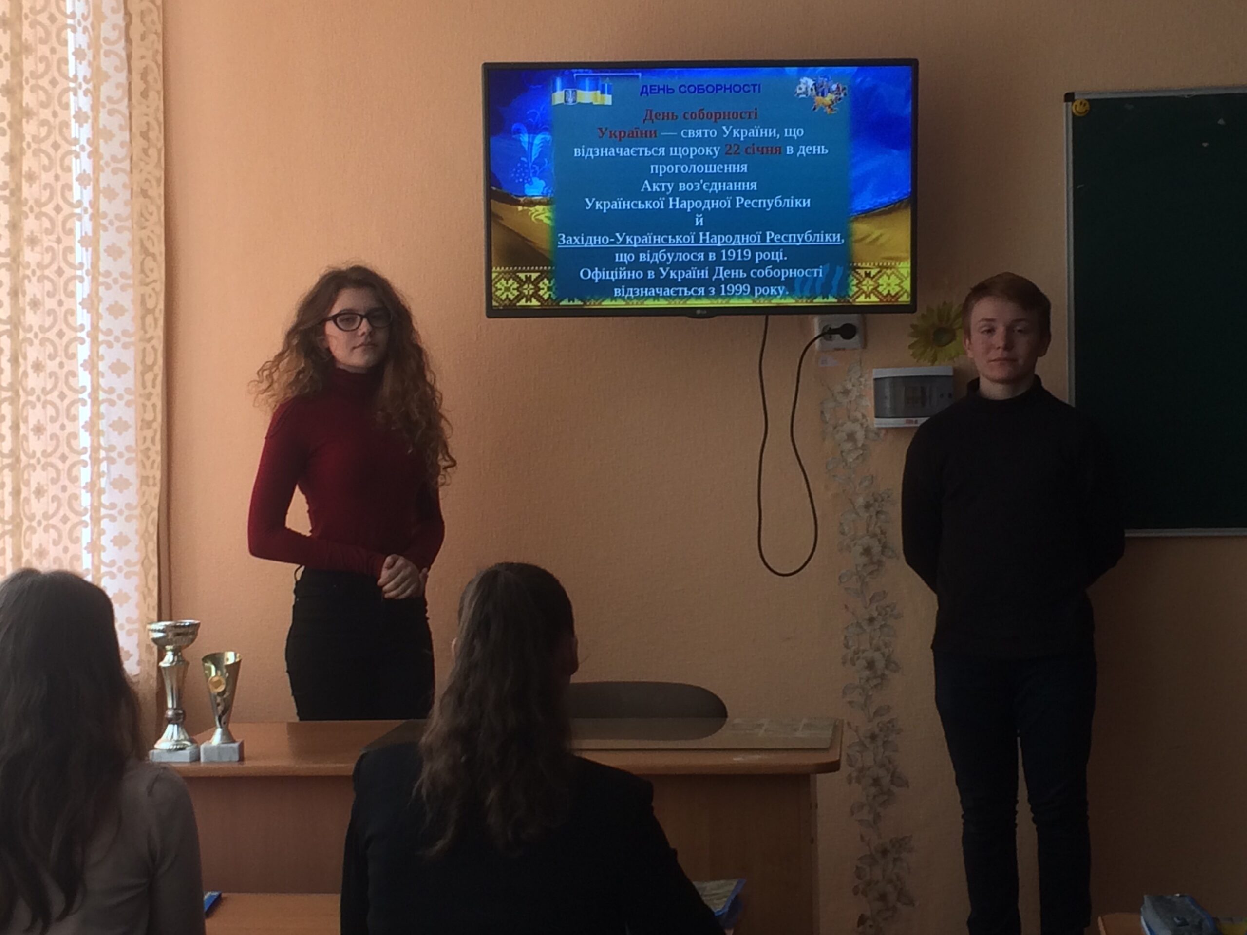 23 січня 2018 року у 10-А класі була проведена година спілкування, що була присвячена 99-й річниці Соборності України. Спілкування несло мету виховати в учнів відчуття патріотизму, гідності, поваги та любові до своєї Батьківщини. Учні 10-А підготували історичну довідку про Акт Злуки УНР та ЗУНР, про день, коли наша Україна об‘єдналась та стала єдиною та соборною.