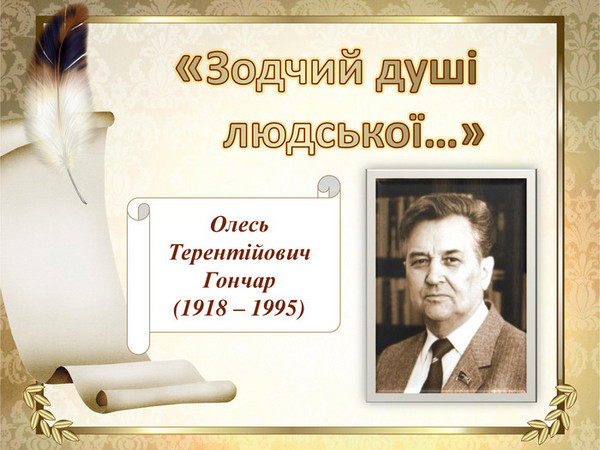 03 квітня 2018 року вся Україна відзначатиме 100-річчя Великого українця, світоча української нації, пейзажиста, лірика, письменника і публіциста, критика, громадського та державного діяча, літературознавця Олеся Терентійовича Гончара.