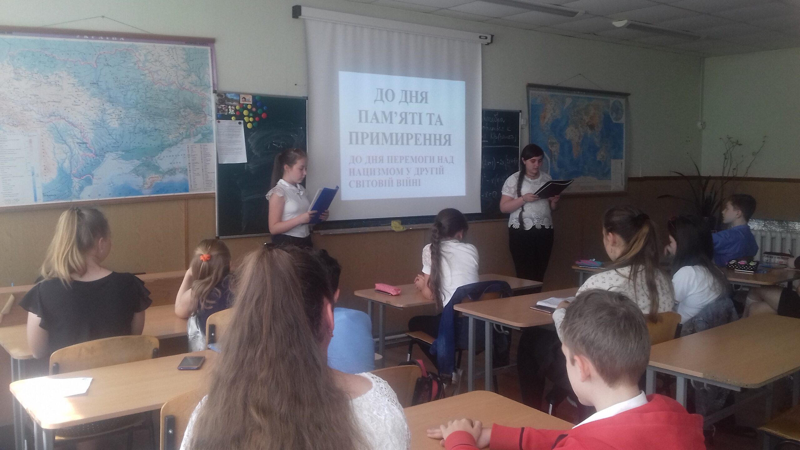 08 травня учні 7-В класу вшанували пам’ять загиблих у Другій світовій війні. Від 1 вересня 1939 року, коли нападом нацистської Німеччини на Польщу і бомбардуванням німецькою військовою авіацією Львова та інших міст війна розпочалася для України, 120 тисяч українців брали участь у двобої з вермахтом у складі Війська Польського. Сотні тисяч українців взяли участь у вторгненні на територію Другої Речі Посполитої у складі Червоної Армії, в запеклих битвах у Фінляндії та в захопленні Бессарабії і Північної Буковини. Українці Волині, Галичини, Західного Полісся, Північної Буковини і Бессарабії в перші роки війни на власному досвіді відчули прискорені заходи радянізації, які обернулися десятками тисяч розстріляних, сотнями тисяч депортованих і арештованих. Тож пам’ятаймо про всіх загиблих. Вічна їм пам’ять та шана!