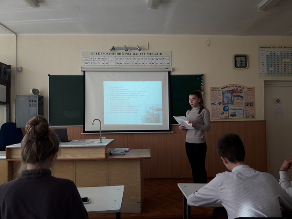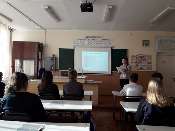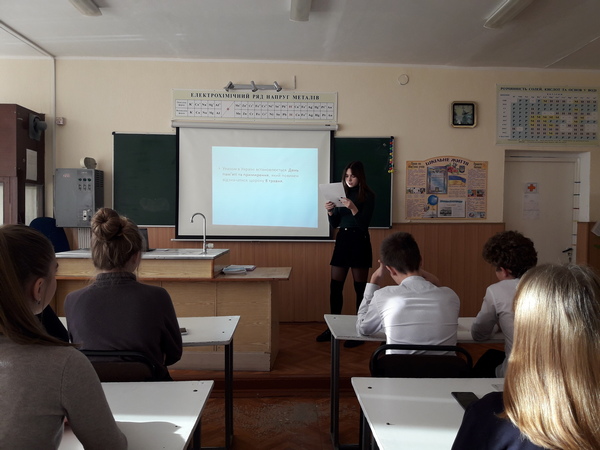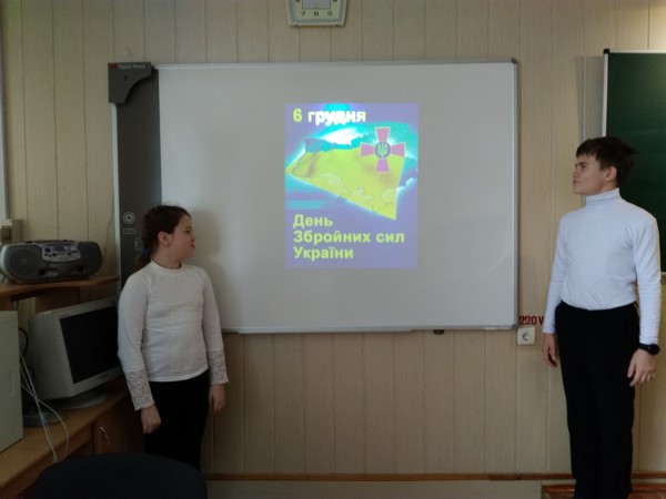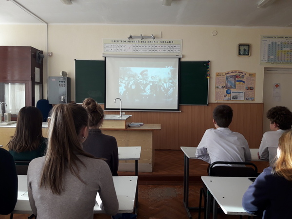 10 жовтня учні 9-Б класу переглянули фрагменти фільмів «Історія Української повстанської армії 1942-1954», «Історія українських земель – Козаки». Після перегляду фільмів діти висловили свою думку щодо боротьби учасників Української повстанської армії проти загарбників українських земель.